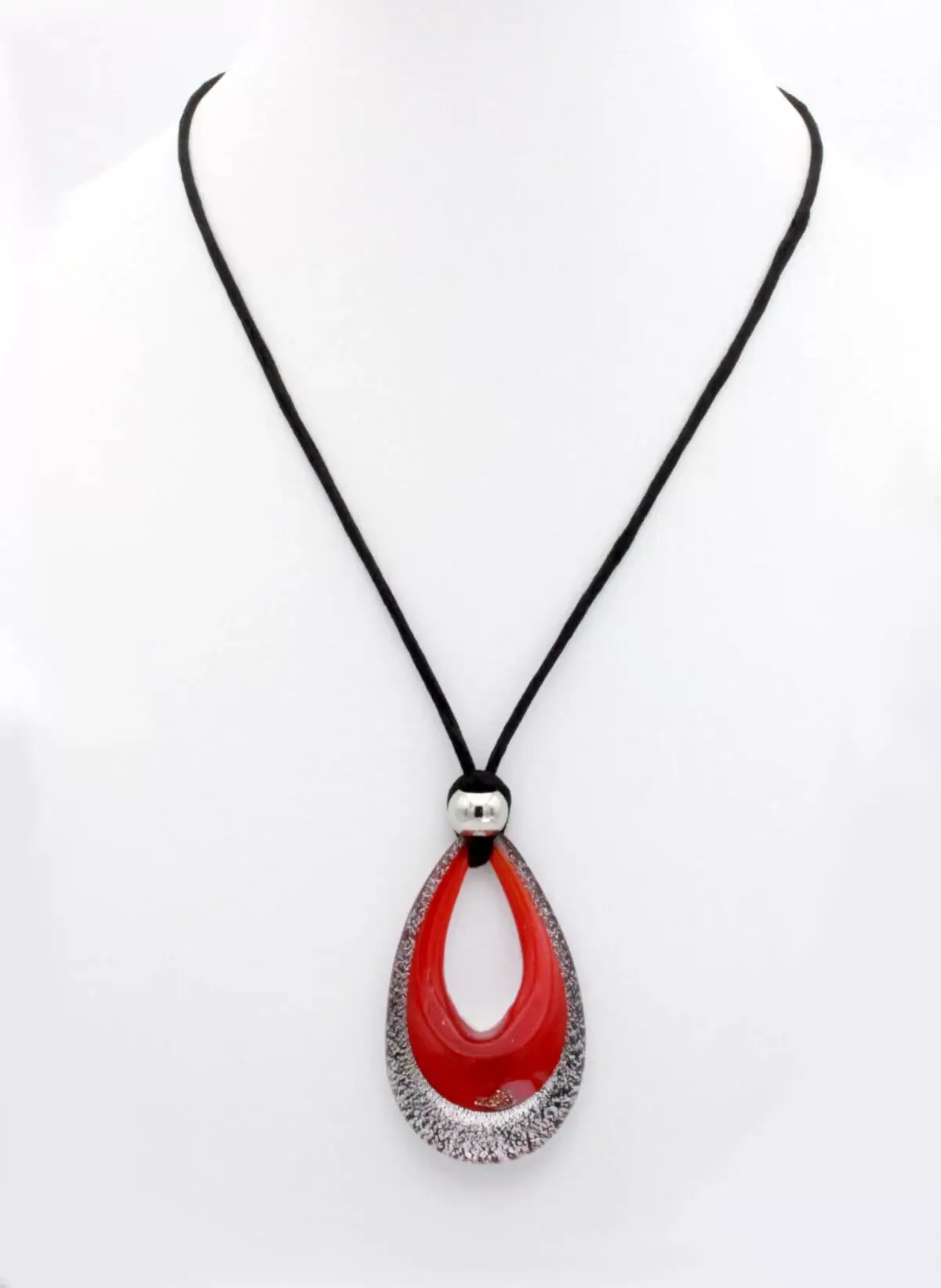 Murano glass tear drop pendant in red and sparkling silver